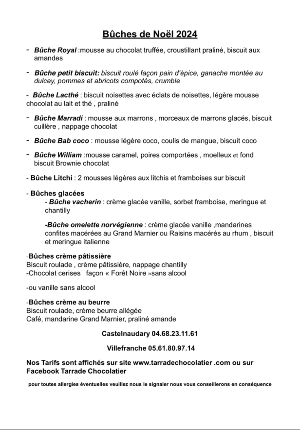 Toute l'équipe de Tarrade Chocolatier vous souhaite de Bonnes Fêtes de Noël en famille ou entre amis et surtout en gourmandise